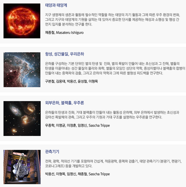 서울대학교 천문학과의 주요 연구 분야는 다음과 같습니다.