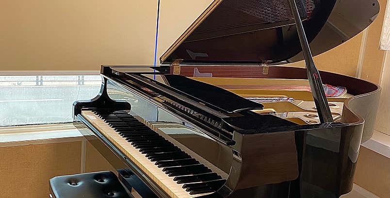 야마하 그랜드 피아노 C3입니다.예쁘게 리빌드한 피아노인데 사진 보내주신 멋진 카페에 잘 어울릴 것 같아요. ~~