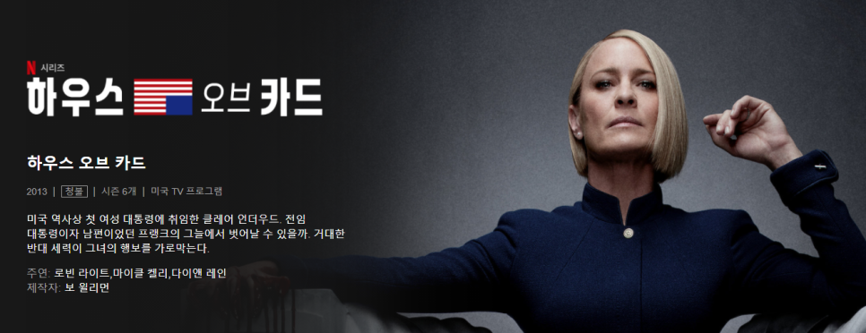 출처. https://www.netflix.com/kr/title/70178217 넷플릭스가 2013년 처음 제작해 선보인 첫 오리지널 시리즈 ‘하우스 오브 카드’ 시즌 1은 에미상 3관왕을 차지하는 등 세계적으로 인기를 끌었던 넷플릭스의 콘텐츠 추천 시스템 다양한 동영상 스트리밍 서비스(OTT, Over The Top, 셋톱박스 초과)가 있음에도 소비자들이 넷플릭스를 선택하는 이유는 넷플릭스만의 콘텐츠 추천 시스템 때문입니다.