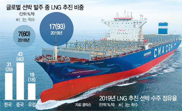 현대삼호중공업이 건조한 러시아 선사 SCFLNG 연료추진 아프락스탱커의 성공적인 인도, 중국은 Captive Market을 기반으로 건조경험을 축적하며 반격을 준비하고 있다. 중국 조선산업은 2018년 LNG 운반선 사고와 2019년 LNG 추진선 인도 지연으로 선주들의 신뢰도에 큰 차질이 빚어졌다. 중국 국영기업 후둥중화조선이 건조한 19개월짜리 LNG 운반선 CESI 글래드스턴(Gladstone)이 2018년 6월 호주 인근 해역에서 고장으로 멈추는 사고가 발생한 것이다. 후동중화조선이 건조한 CESI 글래드스턴호는 재정비하느니 차라리 폐선하는 게 낫다는 판정을 받고 불명예스럽게 폐선됐다. 중국선박공업(CSSC)은 프랑스 선사 CMA-CGM이 발주한 LNG 연료 추진 2만3,000TEU 초대형 컨테이너선 9척의 인도를 기술 부족으로 1년 이상 지연시켜(2019년 초 인도 예정에서 2020년/2021년 인도로 변경) 신뢰도에 큰 타격을 입었다.