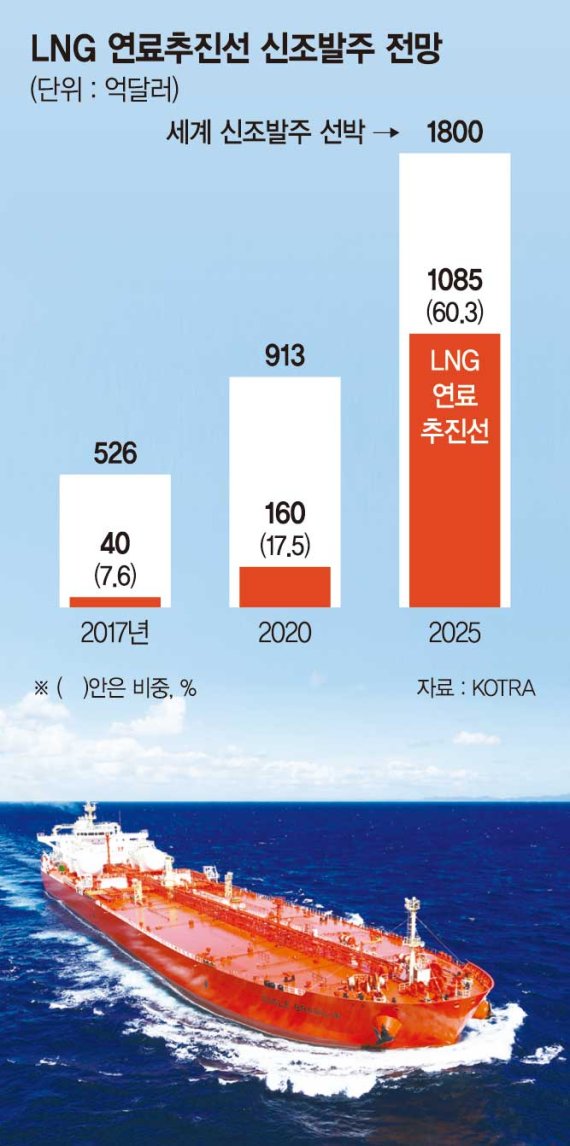 새로 전개되는 LNG 연료추진선 수주 경쟁에서 국내 조선 3사가 기술력 기반 1위를 달리고 있다. LNG연료추진선 건조국 중 한국은 압도적인 Track Record를 보유하고 있으나 LNG연료추진선은 노르웨이, 네덜란드, 핀란드 등이 준비하고 있으며 초대형 상선 분야의 LNG연료추진선 경쟁은 한중일의 3파전으로 한국은 새로운 혁신기술을 지속적으로 연구하고 탄탄한 기본설계 능력과 뛰어난 건조기술을 보유하고 있다.
