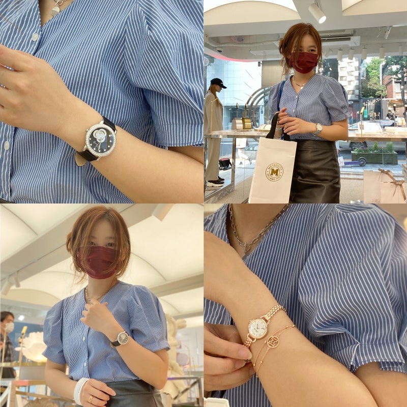 그래서 그런지 트와이스 미나 손목시계가 더 반짝반짝해요. 특히 여름을 시원하게 느끼게 해주는 메탈 스트랩이 눈길을 끌더라구요!