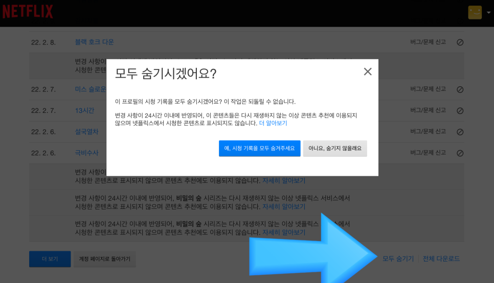 넷플릭스 시청 기록을 모두 삭제하고 싶다면?