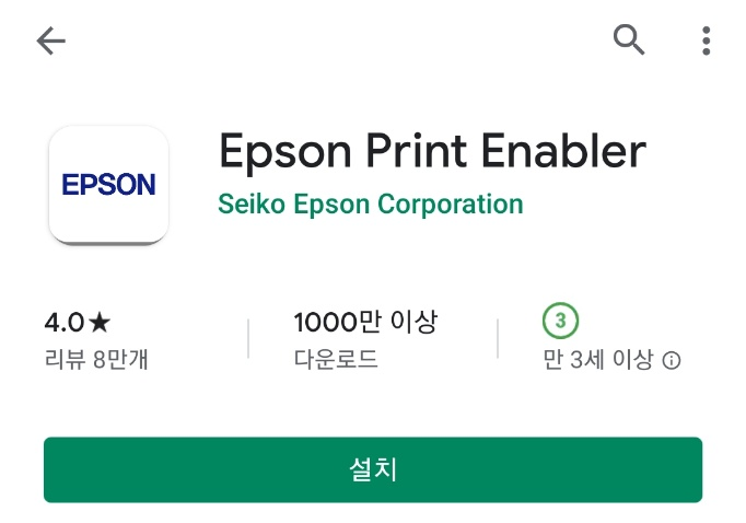 안드로이드 휴대폰 사용자는 휴대폰 안의 자료를 한번에 출력하기 위해 한 단계 더 필요합니다. Epson Print Enabler 라고 하는 플러그 인입니다. 구글 플레이 스토어에서 다운로드 후 설치 완료 시~ 우측 사진처럼 바로 출력할 수 있는 상태가 준비되어 있습니다! 휴대전화 화면에서 출력 버튼을 누르세요!