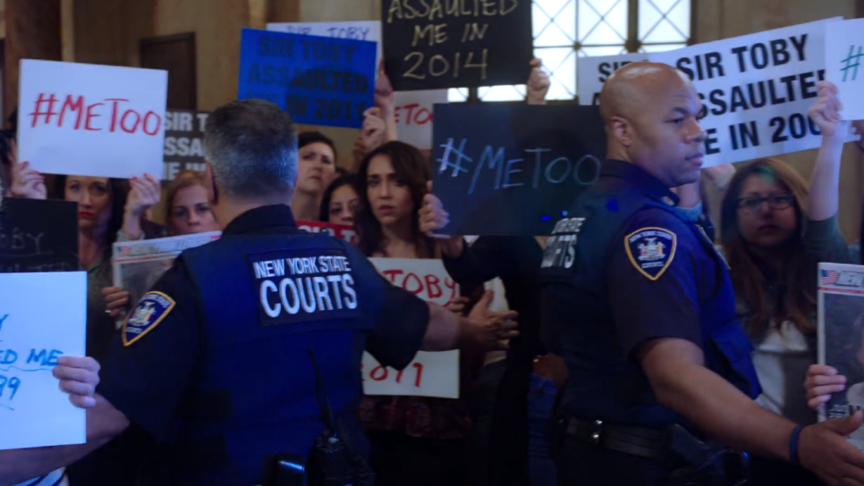 ▲ 지금까지 토비아스 무어에게 당한 피해자들이 Me Too 피켓을 들고 법정 앞에 모인 것입니다.이쯤 되면 깔끔하게 구속되는 분위기고 그동안 토비아스 무어에 협조했던 검찰도 금방 태도를 바꿔 꼬리 자르기를 할 겁니다.이렇게 해서 첫 번째 사연이 끝납니다